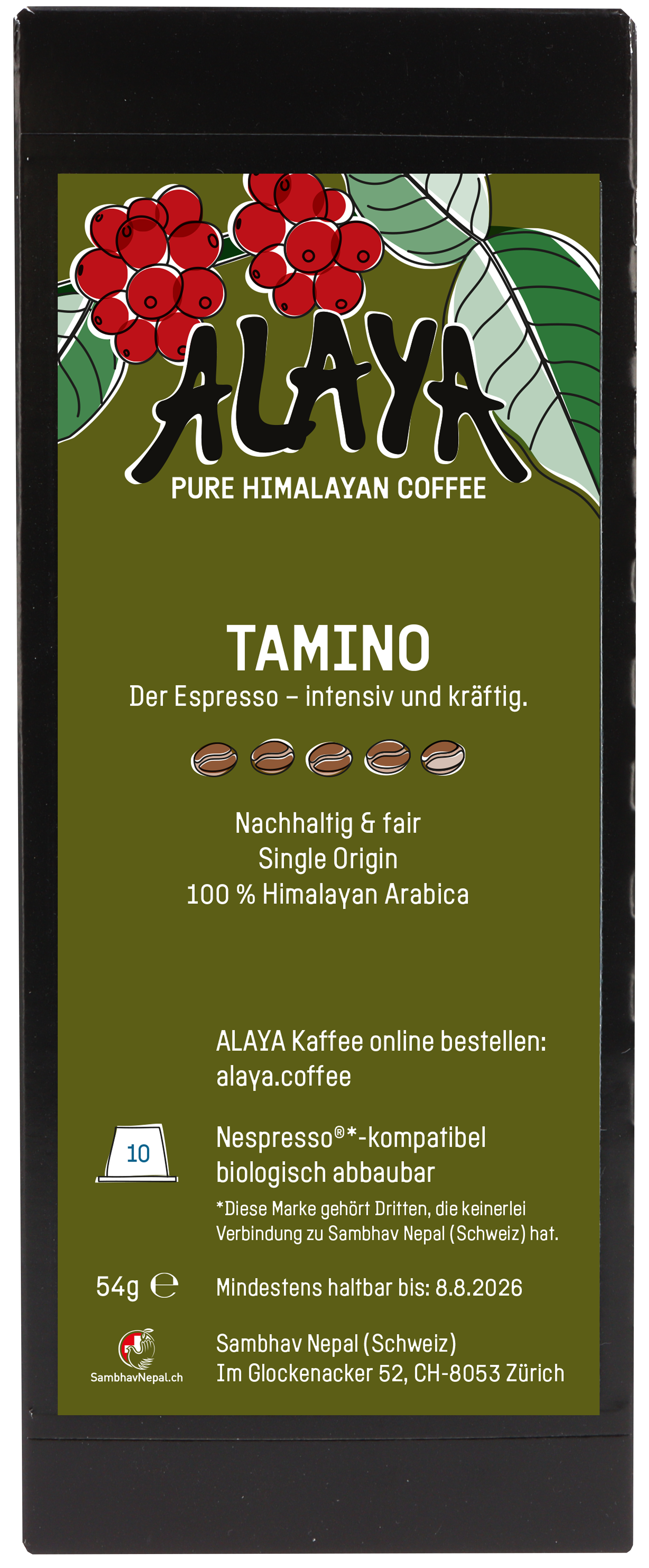 Das reine und gesunde Bergklima in Nepal’s Himalaya schenkt unserer Kaffee-Bohne eine aussergewöhnliche Qualität. Sie zeichnet sich durch erhöhte Anteile an Aminosäuren und ätherischen Ölen aus, welche die Grundlage sind für das einzigartige Geschmackserlebnis des ALAYA. Der Kaffee ist in Nepal BIO-zertifiziert. In der Schweiz verzichten wir bewusst darauf und setzen das Geld lieber vor Ort ein.