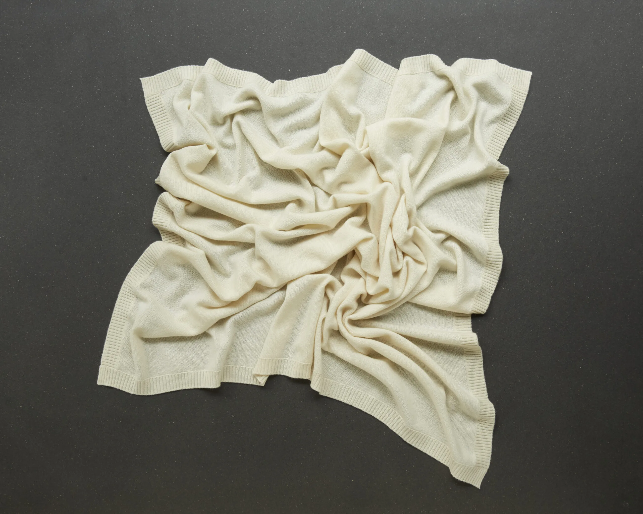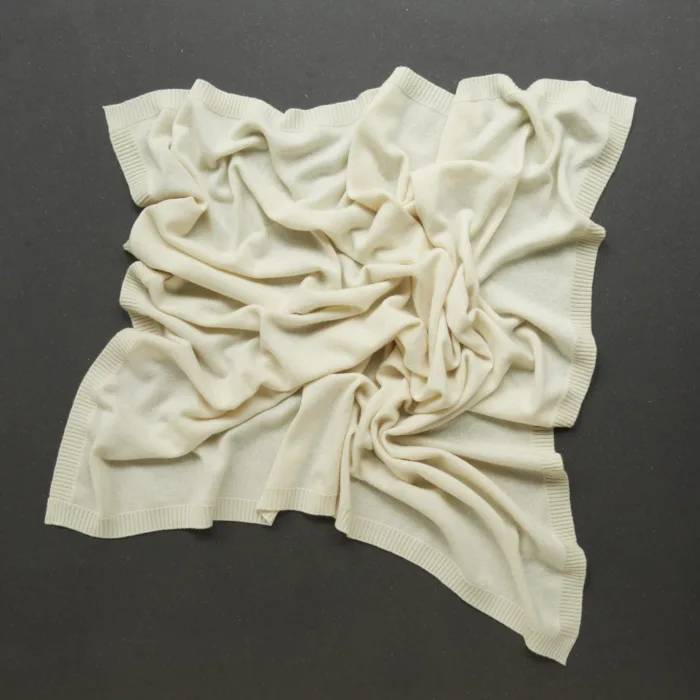 90 x 90 cm (optimal zum Pucken, Zudecken, Wohlfühlen) in Baby-Weiss und Jute (Naturfarben).
