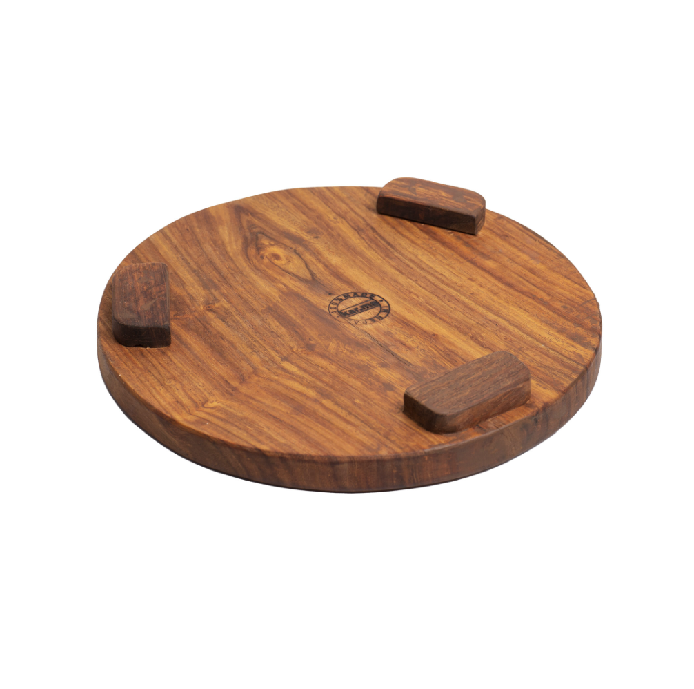 Dieses Holzbrett ist ursprünglich ein traditionelles Chapati-Brett. Es kann aber auch wunderbar als Käse-Brett oder für anderes benutzt werden.