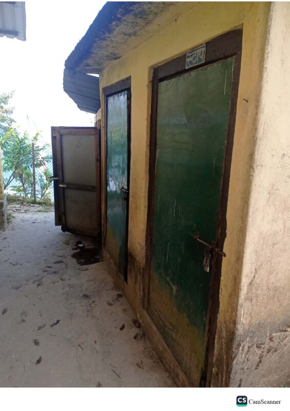 Toilettenseparates Toilettengebäude (nicht mit Schulgebäude verbunden)Toilettenblock mit acht Abteilen (4 Mädchen und 4 Jungen)