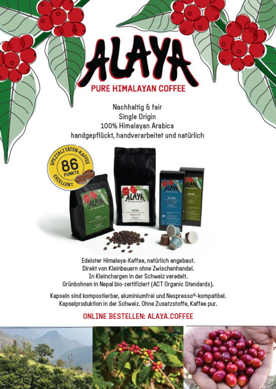 inkl. Kaffee-Degustation und einer 250g-Packung ALAYA Original, Pipo, Crema oder Sindhu nach Wahl. Der gesamte Erlös fliesst in unser Kaffee-Projekt.