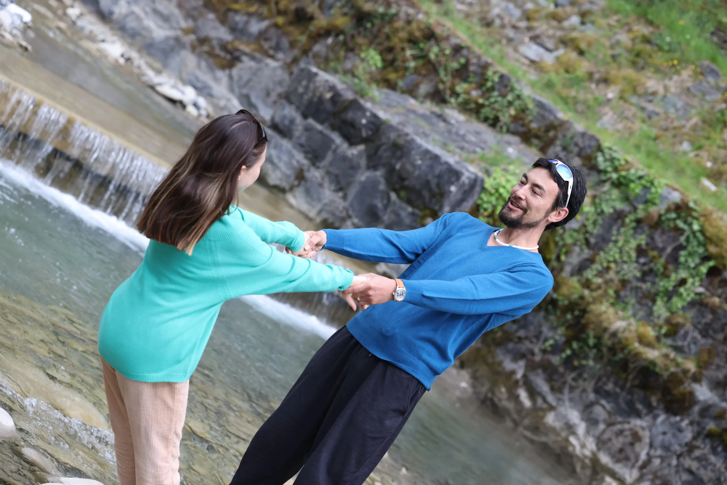 Cashmere Pullover AURORA v-neck jetstream und boatneck poison
